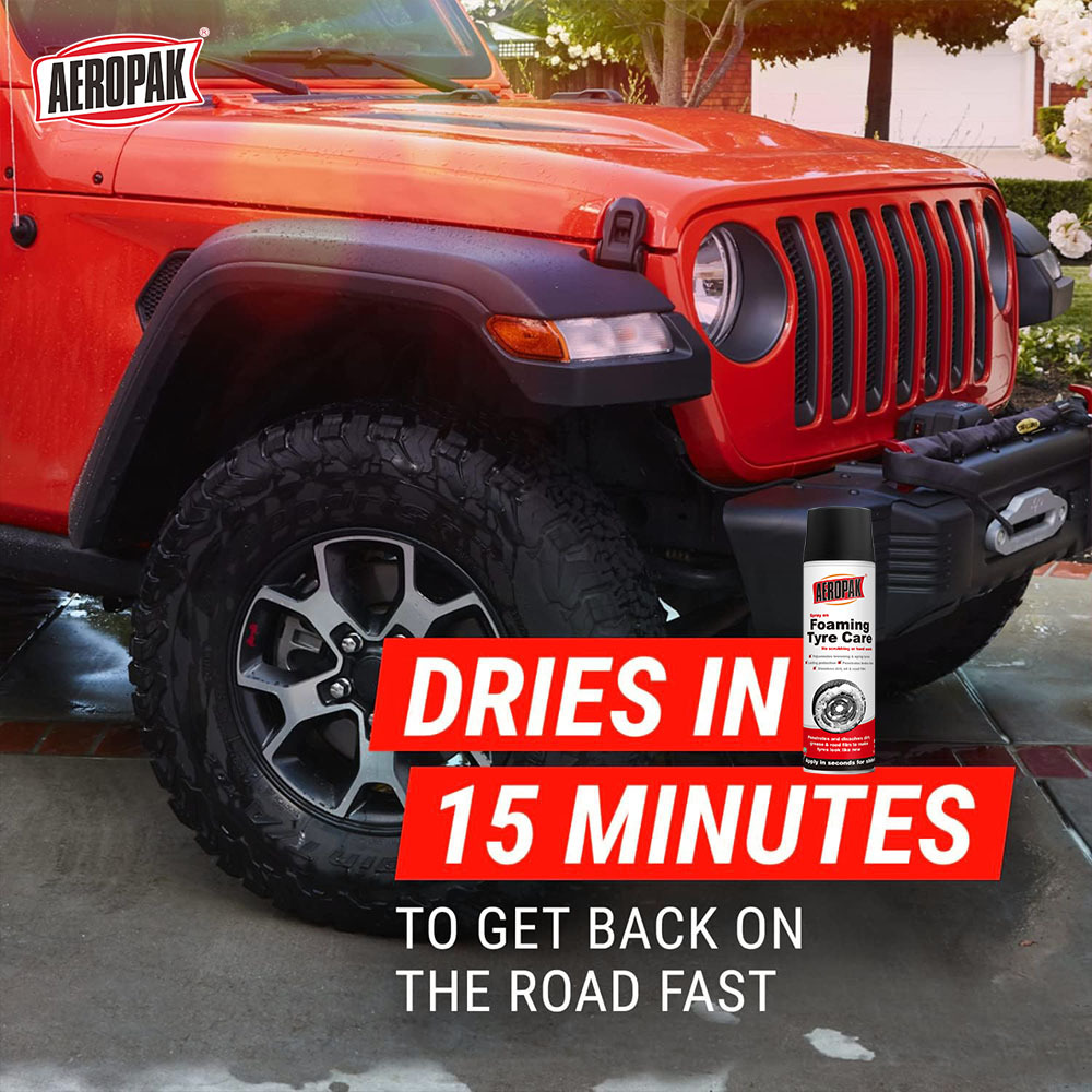 مراقبت از لاستیک فومدار Aeropak حاوی یک ماده ماکرومولکولی است که برای از بین بردن کثیفی جاده، گرد و غبار ترمز، خاک، لایه و چربی نفوذ میکند.